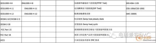 CISPR22(Comite Special des Purturbations Radioelectrique)应用于信息技术类装置, 适用于欧洲和亚洲地区;EN55022为欧洲标准,FCC Part 15 (Federal Communications Commission) 适用于美国,EN30220欧洲EMI测试标准,功率辐射测试标准是EN55013频率在30MHZ-300MHz。