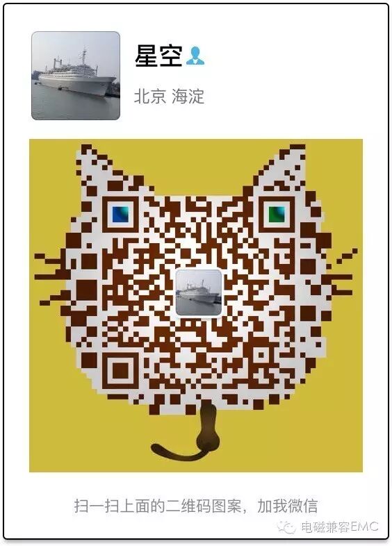 加入电磁兼容(EMC)微信群,与国内外数百EMC同行实时技术交流讨论,长按下方二维码识别加星空为好友,注明“EMC”邀请您进群即可: